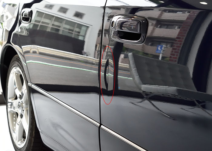 運転席ドアのエッジ付近に10cmほどのヘコミです。